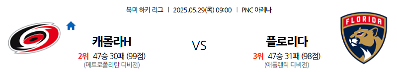 - 시리즈 전적: 플로리다 팬서스 3 - 2 캐롤라이나 허리케인스
